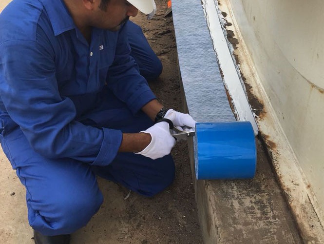 Problem: Storage tanks suffer from corrosion of the underside of the base of the tank due to ingress of rainwater between the tank and the concrete base upon which the tank is supported. This situation is dangerous, since the corrosion is occurring in a position which is inaccessible .